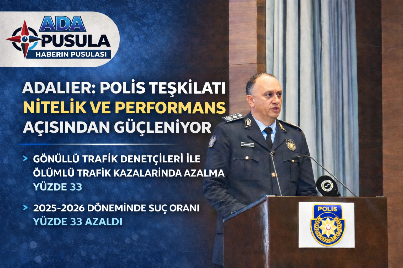 Adalıer, 16 Şubat 2025 ile 16 Şubat 2026 tarihleri arasını kapsayan verilere göre suç oranlarında yüzde 33’lük düşüş yaşandığını açıkladı. Polis teşkilatının yalnızca personel sayısı bakımından değil, eğitim ve uzmanlık düzeyi açısından da geliştiğini belirten Adalıer, hem yurt içinde hem yurt dışında eğitim alan çok sayıda personelin görev yaptığını söyledi.