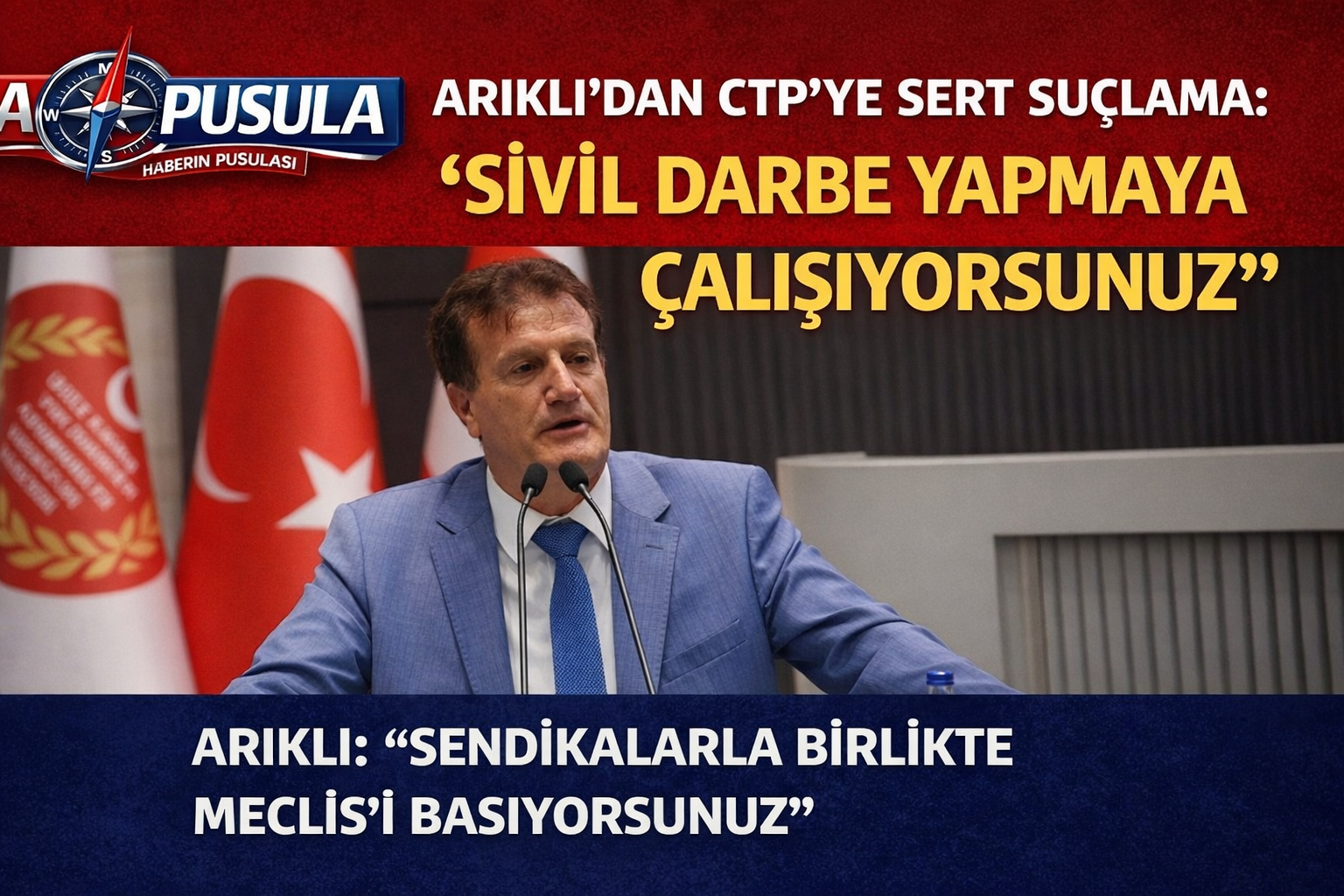 Arıklı, CTP’nin sendikalarla birlikte hareket ederek Meclis üzerinde baskı kurmaya çalıştığını öne sürerek, “Mevcut hükümete sivil darbe yapmak için sendikalarla birlikte Meclis’i basıyorsunuz” ifadelerini kullandı.