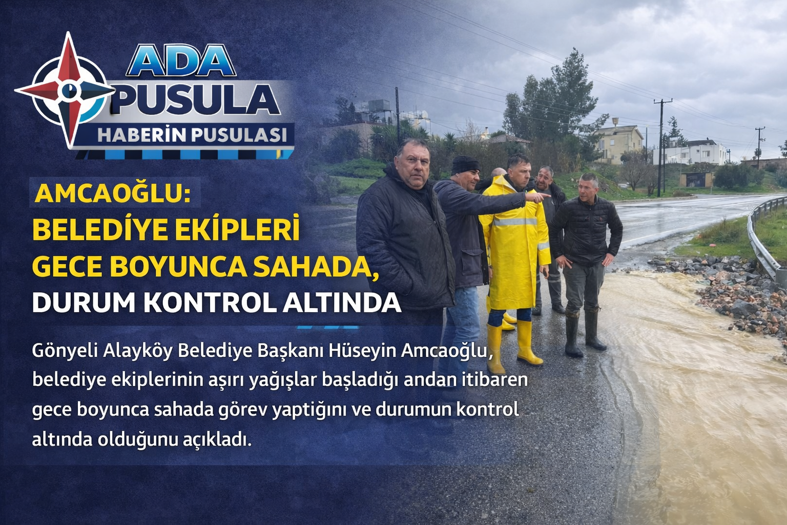 Gönyeli Alayköy Belediye Başkanı Hüseyin Amcaoğlu, etkili olan aşırı yağışların başladığı ilk andan itibaren belediye ekiplerinin gece boyunca sahada görev yaptığını açıkladı.