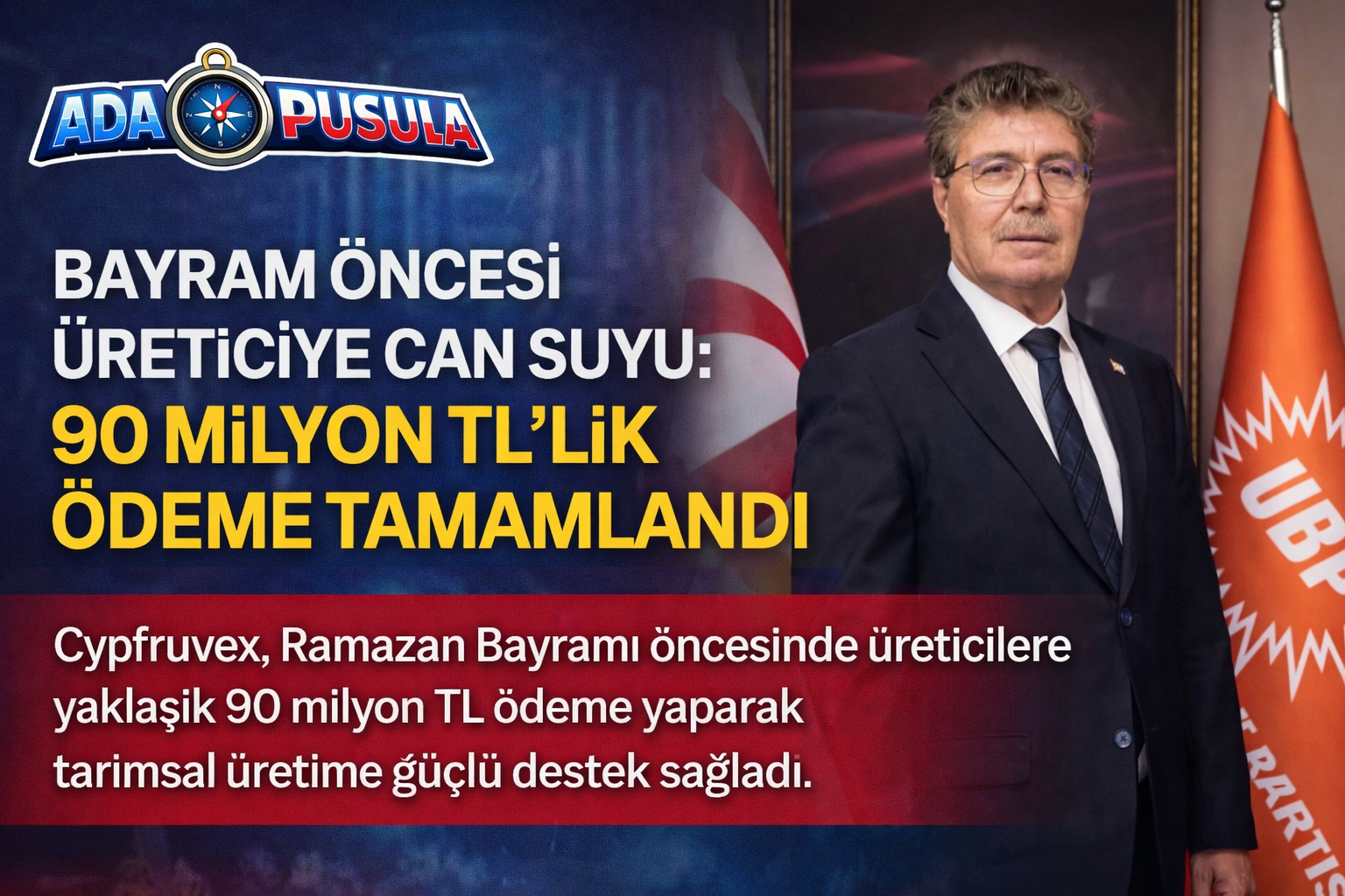 Başbakan Ünal Üstel, Cypfruvex Ltd. tarafından Ramazan Bayramı öncesinde üreticilere yaklaşık 90 milyon TL ödeme yapıldığını açıkladı. Yapılan ödemelerin, tarım sektörüne önemli bir katkı sağladığı vurgulandı.