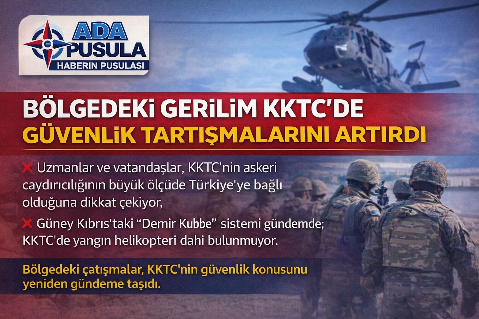 Uzmanlar ve vatandaşlar, KKTC’nin askeri caydırıcılığının ve güvenlik şemsiyesinin büyük ölçüde Türkiye tarafından sağlandığını vurguluyor. Güney Kıbrıs Rum Yönetimi’nde “Demir Kubbe” benzeri hava savunma sistemlerinin gündeme gelmesi dikkat çekerken, KKTC’de teknik ve askeri imkânlara ilişkin değerlendirmeler sosyal medyada farklı yorumlara neden oldu.