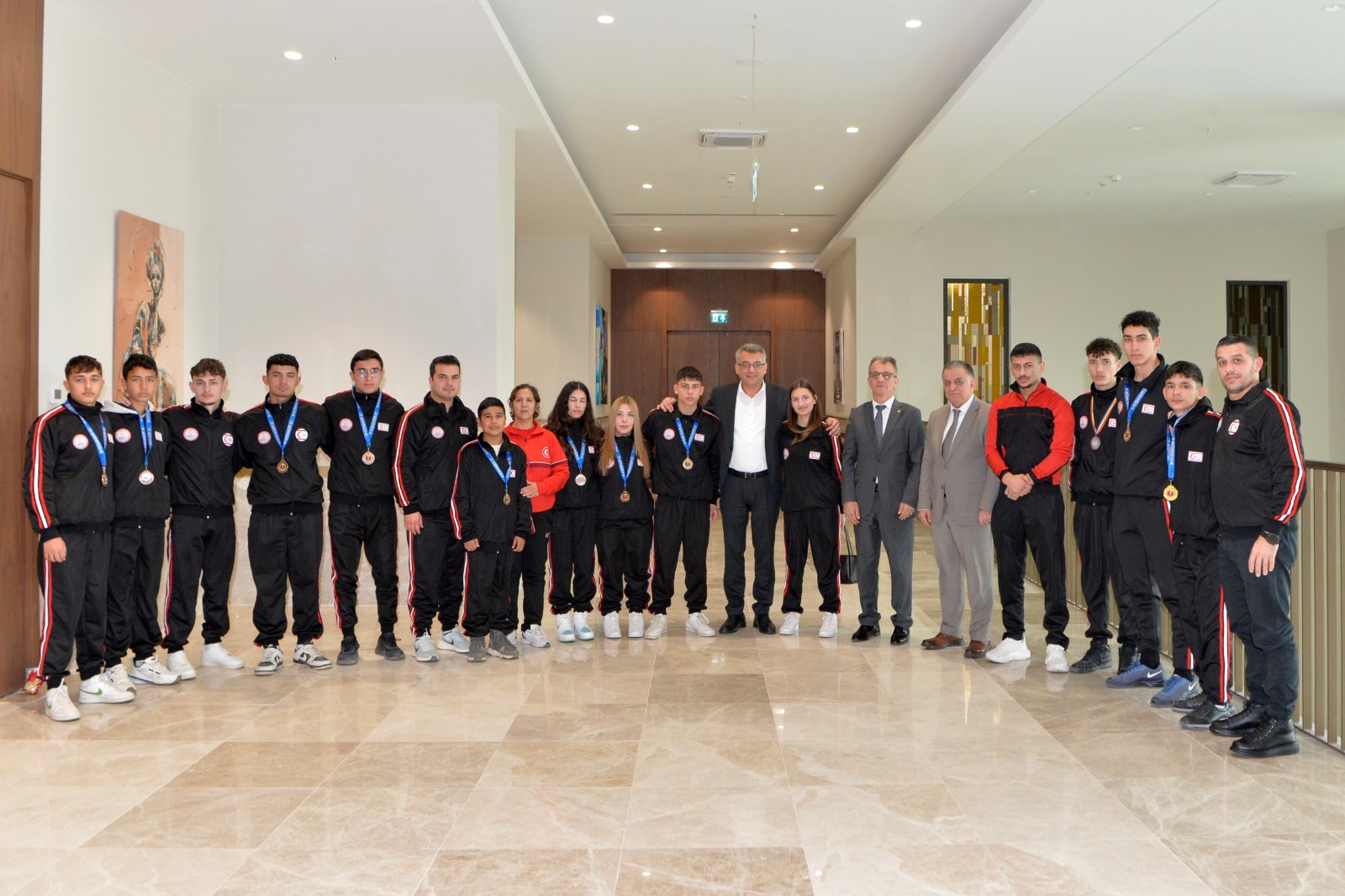Tufan Erhürman, KKTC Güreş Federasyonu Başkanı Kemal Bayraktar, federasyon yönetim kurulu üyeleri, antrenörler ve sporcuları kabul etti.