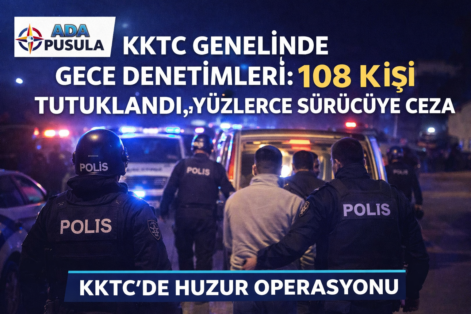 Kuzey Kıbrıs Türk Cumhuriyeti’nde polis ekipleri tarafından ülke genelinde gerçekleştirilen eş zamanlı asayiş ve trafik denetimlerinde toplam 108 kişi tutuklandı. Denetimler sırasında yüzlerce sürücüye trafik cezası kesilirken çok sayıda araç da trafikten men edildi.
