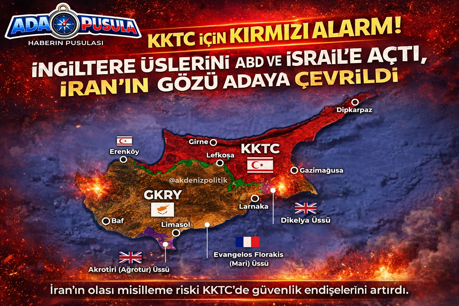 Doğu Akdeniz’de gerilim yeni bir boyuta taşınırken, Birleşik Krallık’ın Kıbrıs’taki üslerini ABD ve İsrail kullanımına açması, Kuzey Kıbrıs Türk Cumhuriyeti açısından ciddi güvenlik endişelerine yol açtı. Bölgedeki gelişmeler, İran’ın olası misilleme hamleleriyle Kıbrıs’ın doğrudan hedef haline gelebileceği yönünde yorumlanıyor.