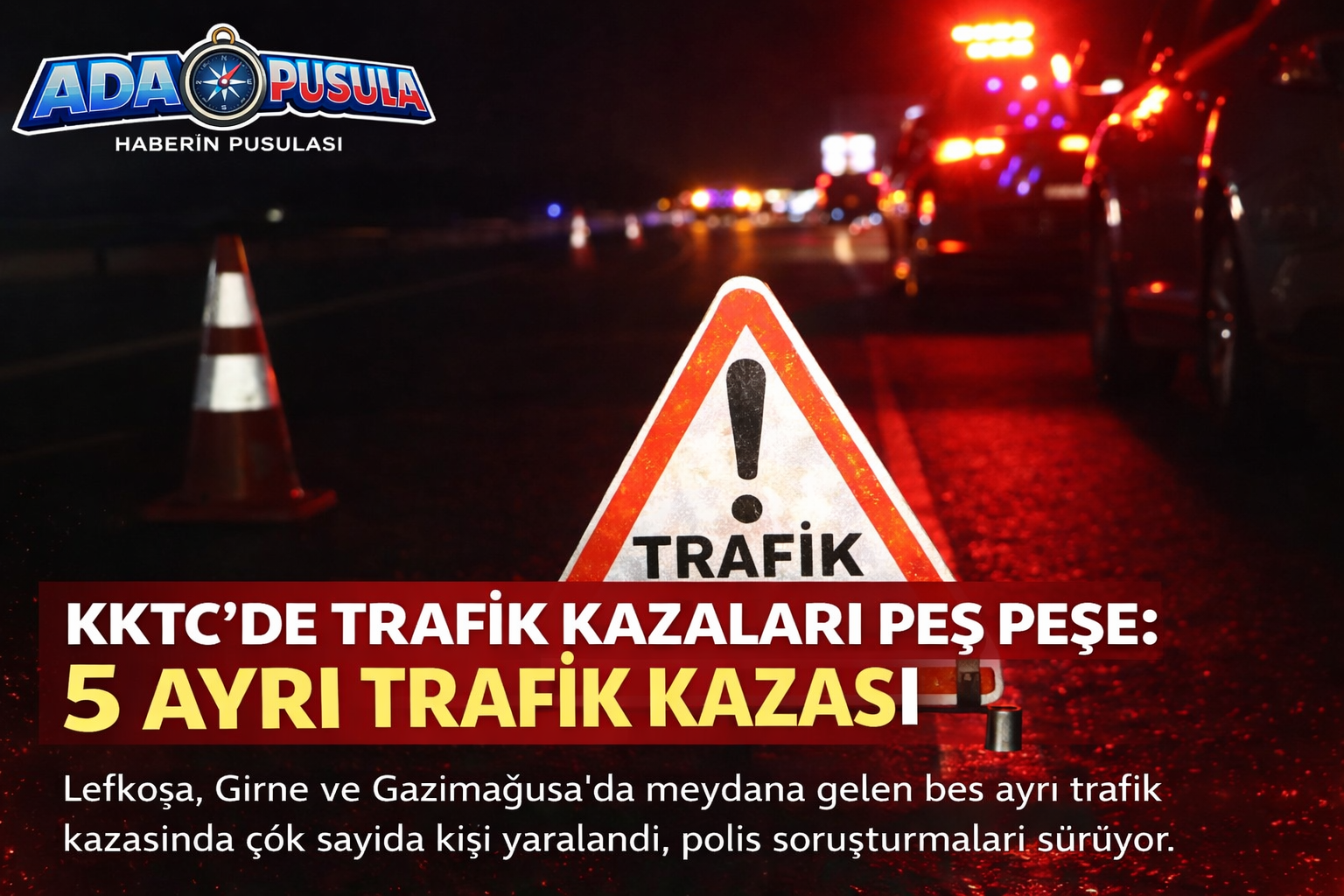 Lefkoşa, Girne ve Gazimağusa’da 19-20 Mart tarihlerinde meydana gelen beş ayrı trafik kazasında çok sayıda kişi yaralandı. Polis, kazalarla ilgili soruşturmaların sürdüğünü açıkladı.
