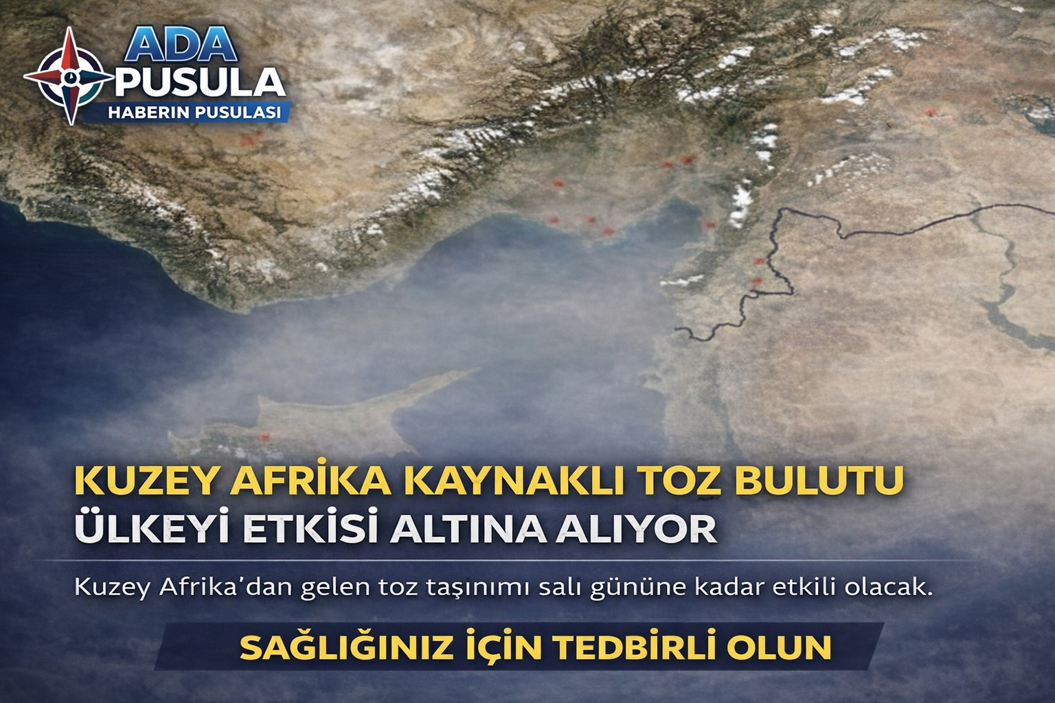 Meteoroloji Dairesi’nden yapılan açıklamaya göre, bugün saat 12.00 itibarıyla etkisini göstermeye başlayan toz taşınımının, salı günü öğleden sonraya kadar bölgede etkili olması bekleniyor.
