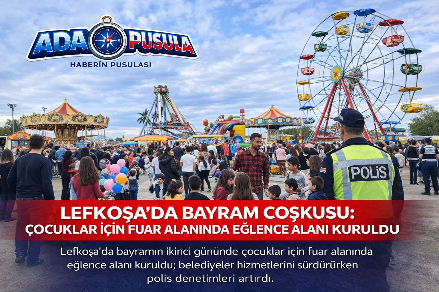 Ramazan Bayramı’nın ikinci gününde Kuzey Kıbrıs’ın başkenti Lefkoşa’da bayram coşkusu devam ediyor. Vatandaşlar bayram ziyaretlerini sürdürürken, Lefkoşa Fuar Alanı’nda özellikle çocuklara yönelik bayram yeri kuruldu. Aileler çocuklarıyla birlikte alana yoğun ilgi gösterirken, etkinlikler bayram sevincini artırdı.