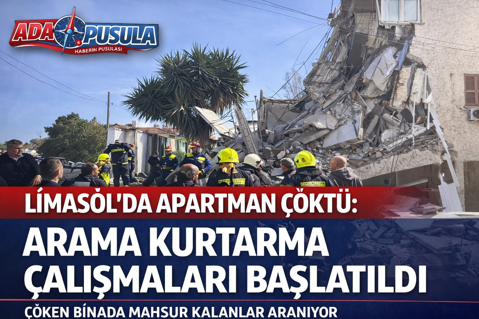 Limasol’da bir apartmanın bir bölümünün çökmesi üzerine bölgede geniş çaplı arama kurtarma çalışması başlatıldı. İlk belirlemelere göre, bina içerisinde en az bir kişinin bulunabileceği değerlendiriliyor.