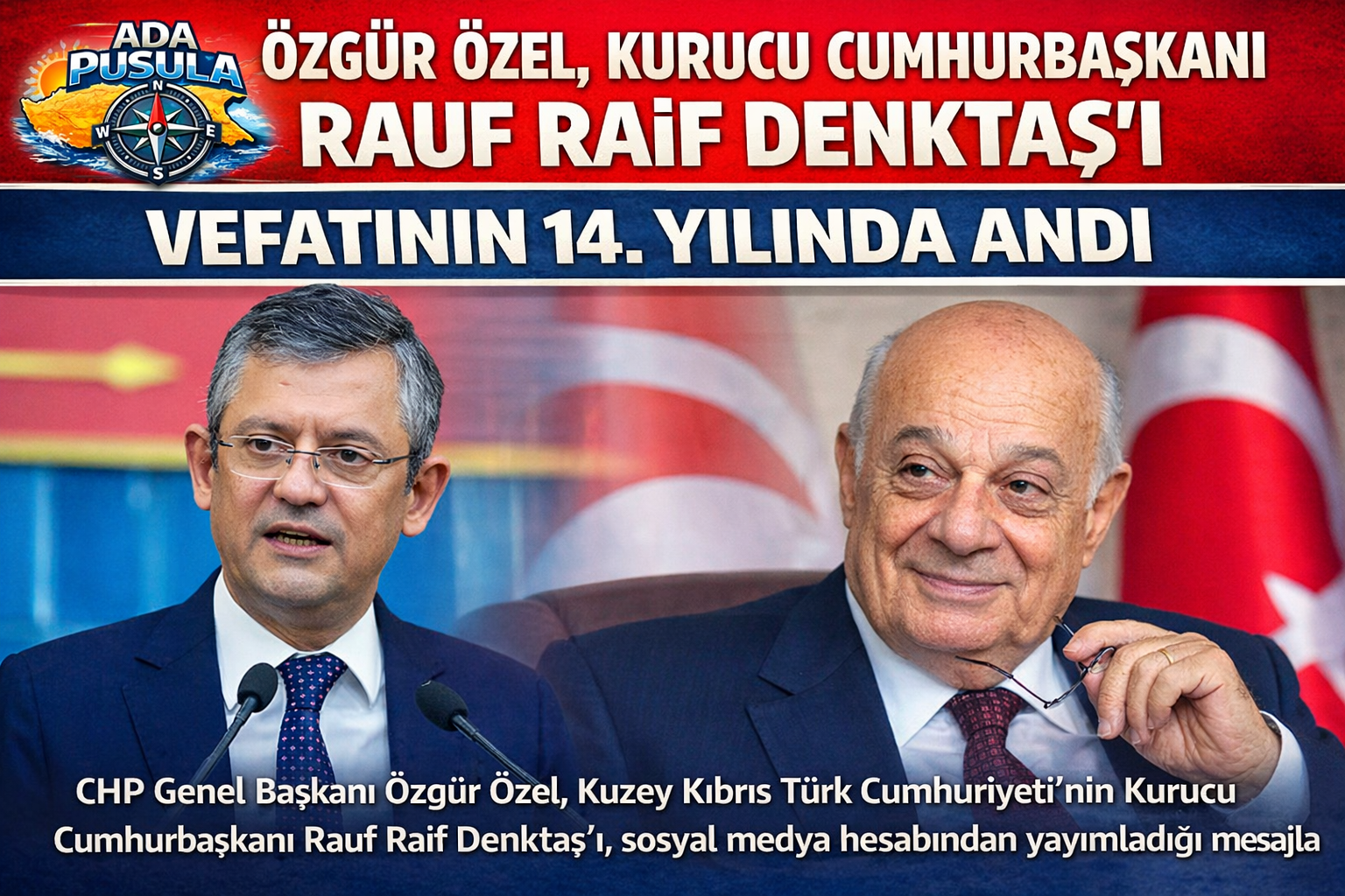 CHP Genel Başkanı Özgür Özel, Kuzey Kıbrıs Türk Cumhuriyeti’nin Kurucu Cumhurbaşkanı Rauf Raif Denktaş’ı vefatının 14’üncü yıl dönümünde andı.