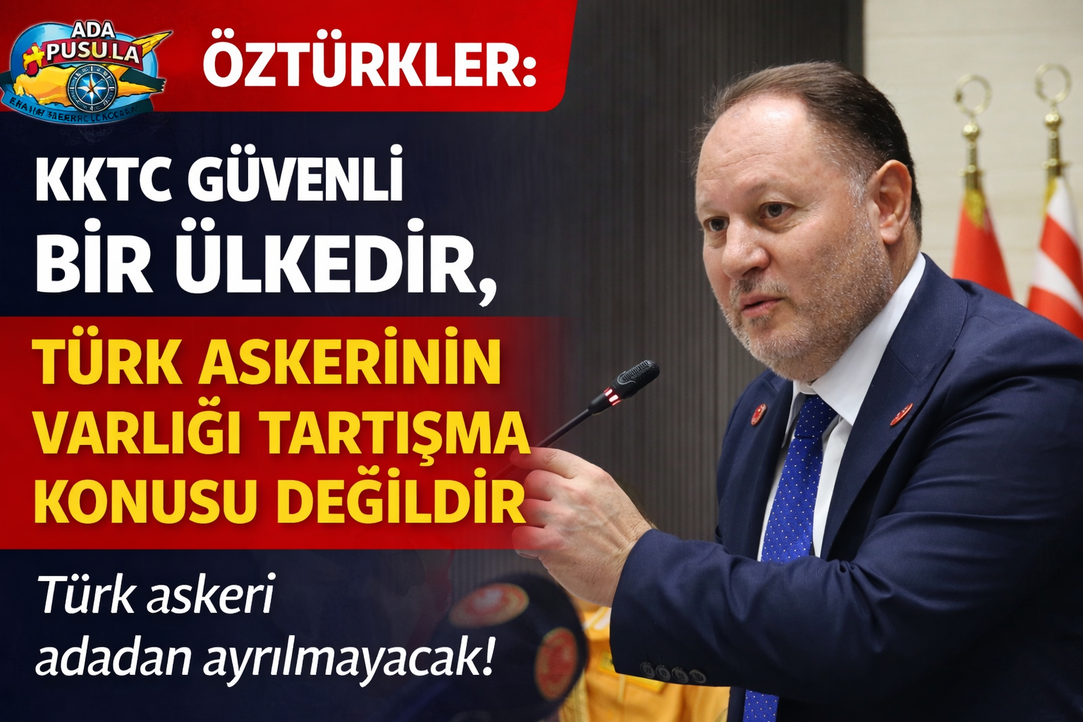 Türkiye’nin adada işgalci değil garantör ülke olduğunu vurgulayan Öztürkler, “Kıbrıs Türk halkı azınlık değil, bu adanın ev sahibidir. Türk askeri de burada kalacaktır” ifadelerini kullandı.