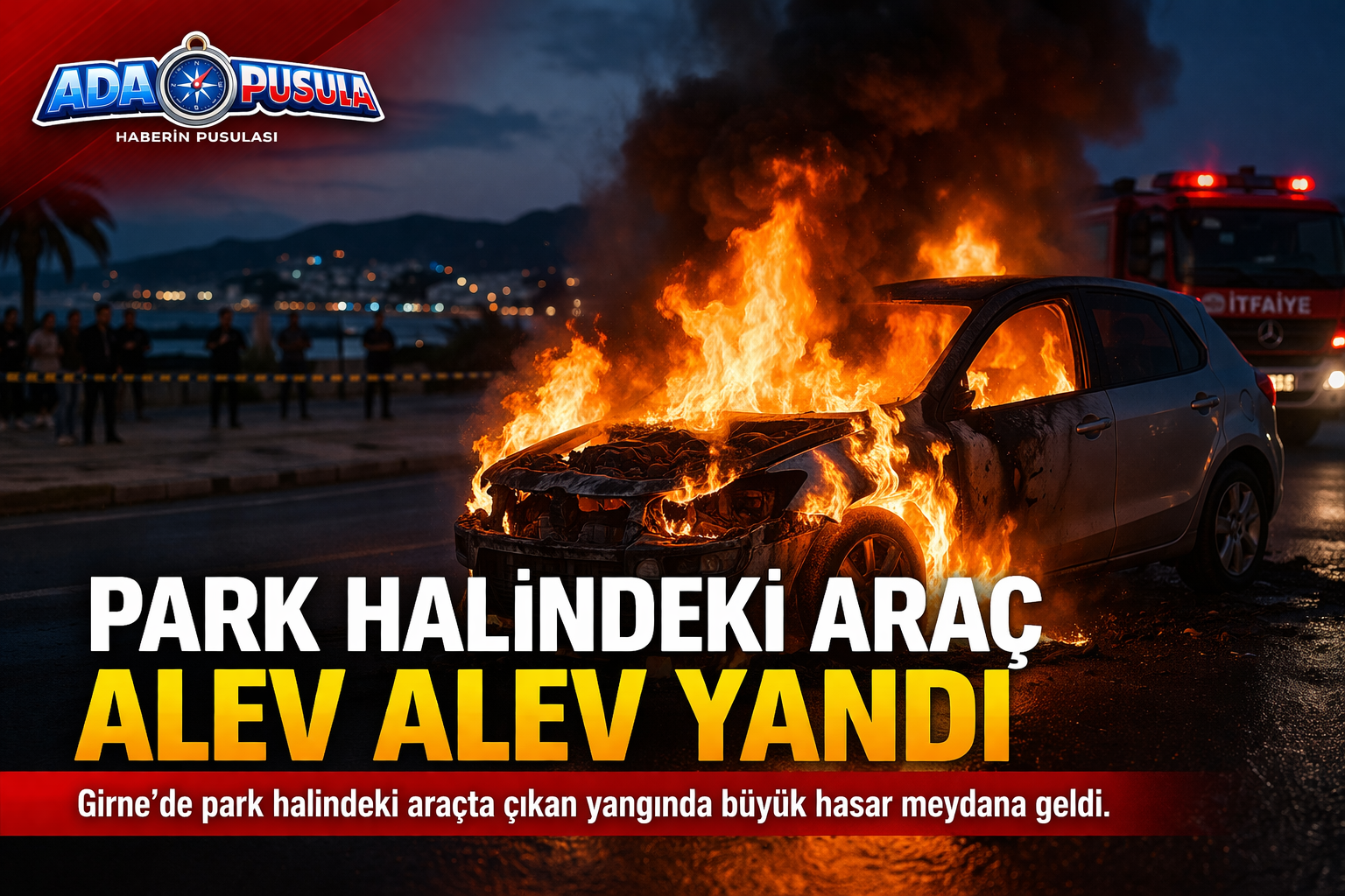 Girne’de park halinde bulunan bir araçta çıkan yangın, kısa süreli paniğe neden oldu. Olay, 18 Mart 2026 tarihinde saat 18.30 sıralarında Raif Denktaş Caddesi üzerinde meydana geldi.
