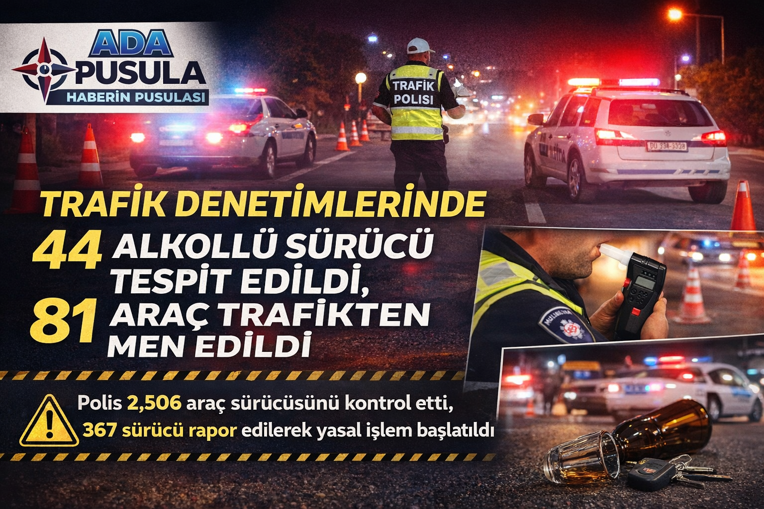 - 44 sürücü: Alkollü içki tesiri altında araç kullanmak