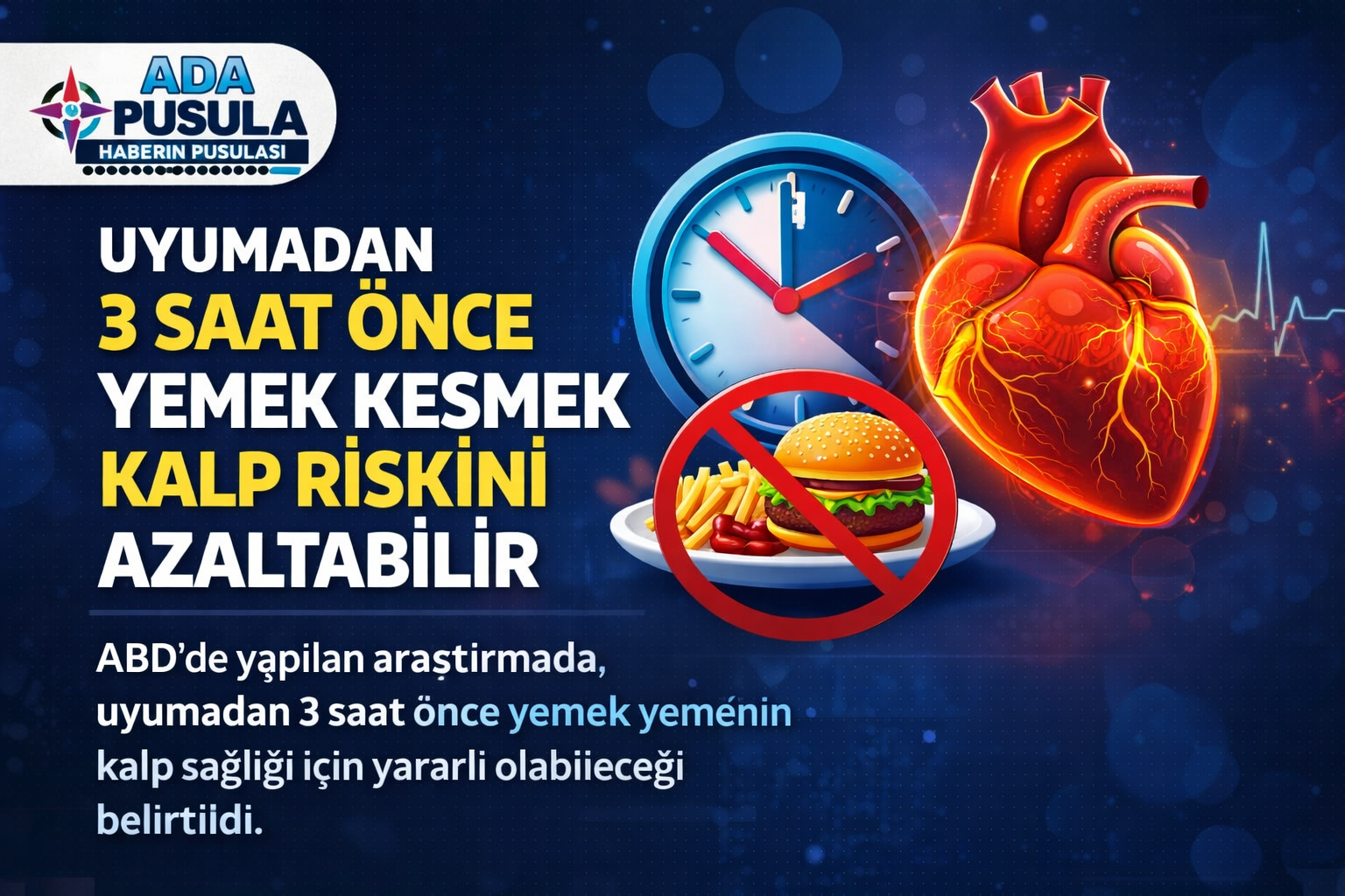 ABD’de gerçekleştirilen yeni bir araştırma, uyumadan önceki son üç saat içinde yemek yememenin kalp sağlığı ve metabolizma üzerinde olumlu etkiler sağlayabileceğini ortaya koydu.