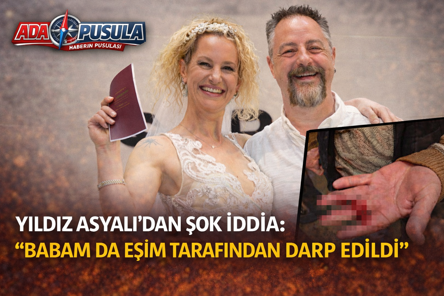 Yıldız Asyalı, babasının darp edildiğini gösteren fotoğrafı takipçileriyle paylaşarak, “Babam da eşim tarafından darp edildi” ifadelerini kullandı. Paylaşım kısa sürede sosyal medyada gündem oldu.